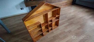 Bacheca portaoggetti in legno (80h×85l). appendibile o da terra. Finemente realizzata.