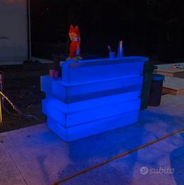 2pz Banco bar plexiglas bianco, illuminato da led blu come la foto in notturna. Resistente alle intemperie.