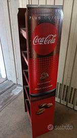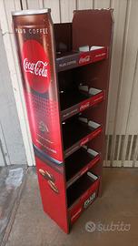 Espositore promozionale in cartone della Coca Cola. Altezza 124 cm, larghezza 37 cm, profondità 25 cm. Dotato di 5 ripiani con buona resistenza in grado di fungere da mobiletto. Condizioni più che buone. Solo consegna a mano a Torino in corso Cosenza.