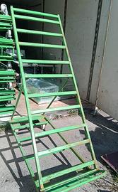 Materiale: ferro quadralino verniciato verde, struttura autoportante su ruote. Presenta segni di usura; riverniciatura disponibile su richiesta.