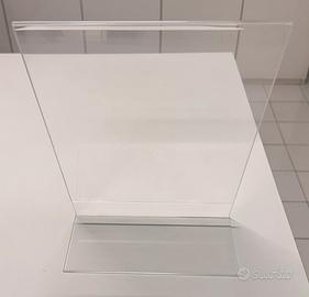 Espositore verticale da banco in plexiglass trasparente, ideale per mostrare menù, listini prezzi, avvisi, comunicazioni o volantini in formato A4.