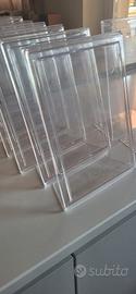 Vendo 9 espositori verticali da tavolo in plexiglass trasparenti.2 senza cornice 7 con cornice