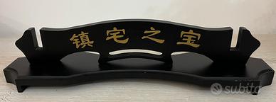 Come da titolo, si vende espositore ornato per spade come Katana, Wakizashi, ecc. L’articolo risulta essere integro in tutto.