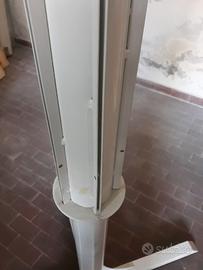 Espositore girevole in alluminio ,h.176 e largo alla base cm.100, con la possibilità di inserire 5 fogli in plexiglass apribili a libro per inserire foto, manifesti,ecc. Vendo. No spedizione per il peso e l"ingombro.