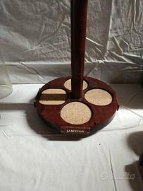 Elegante globo bar vintage risalente agli anni ’80, progettato come portabottiglie a forma di mappamondo girevole. Un complemento d’arredo originale e scenografico, pensato per ospitare quattro celebri etichette di whisky internazionali: Wild Turkey, The Glenlivet, Jameson e Bushmills.