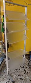espositore "KD Visual" per riviste o libri in alluminio con 5 piani regolabili in plexiglass satinato, misure 44p.x73l.x183h. cm. con 4 ruote no spedizione ritiro sul posto