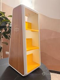 Espositore da negozio Lipton con un design moderno e accattivante. - Struttura a più ripiani. - Finitura esterna effetto legno. - Dettagli interni in colore giallo vivace. Alto 61 Larghezza 24 Profondità 28 Tasche profonde 7,5 giuste per i pacchetti lipton
