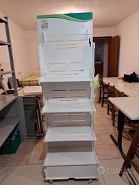 Espositore in legno nuovo, alto 1.8 m e largo circa 60 cm. 7 Ripiani.