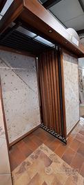 Espositore per piastrelle a pannelli: 2 fissi - 9 scorrevoli dimensioni L0,99 H 1,98 - misure totali H 2,20 P 1,07 L 2,15