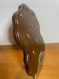 Espositore pubblicitario da banco per orologi Perseo in legno con placca decorativa e ganci in metallo.