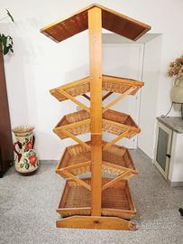 Per panetteria, o per qualsiasi utilizzo, espositore come nuovo in vimini e legno.