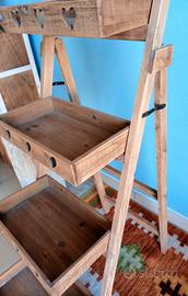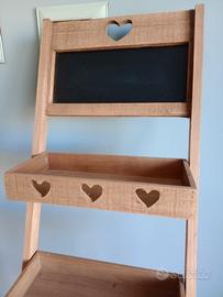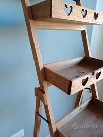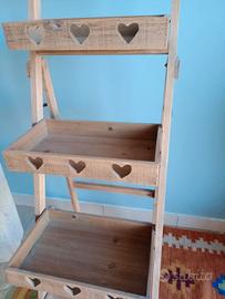 Espositore scaletta un legno con cuori intagliati