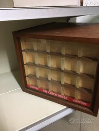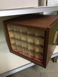 Vendesi espositore di spagnolette originale cucirini antico un po danneggiato 40x40altezza 30