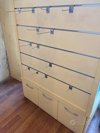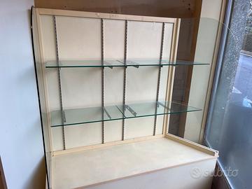 Ripiani in cristallo e ganci sulle cremagliere per appendere gli articoli
