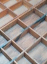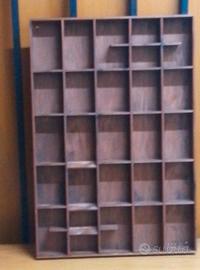 Espositori/bacheca porta oggetti in legno di colore scuro ha dimensioni lunghezza 0,69 cm x047 xh4,5 cm. Queste vetrinette sono perfette per conservare i tuoi piccoli oggetti, gioielli, pupazzetti, tisane, piccole collezioni, vasetti, ecc. Possono essere appese o appoggiate su qualsiasi ripiano per avere spazi ordinati, sia come vetrina espositiva da parete,bacheca portaoggetti da tavolo, organizer per cassetti o scatola portaoggetti. e bacheche possono essere decorate in molteplici modi- decoupage,laccatura,pittura, ecc.Qualche piccolo segno di usura i PZ. sono 8.