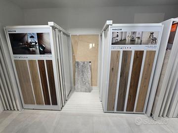 Disponibili diversi modelli di espositori professionali, ideali per mostrare piastrelle e pavimenti in ceramica. Ogni espositore è estraibile, perfetto per ottimizzare gli spazi in showroom o negozi di arredo. In buono stato, già pronti per l’uso.
