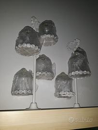 Sono uno con 3 campane alto 35 cm ed uno con 4 campane alto 45 cm ,li vendo a 25 il piccolo e 35 il grande sconto considerevole se presi assieme.