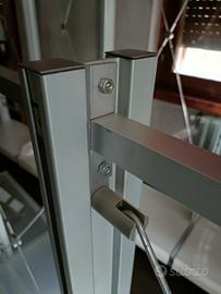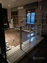 Si vende il sistema modulare degli espositori in alluminio con mensole in plastica trasparente. Ideale per negozio o magazzino per mettere le cose non troppo pesanti. In totale ce ne sono ca. 20 metri lineari. Tutto è già stato smontato e pronto per partire.