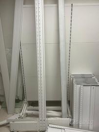 N2: coppia scaffali in stile “gondola” in alluminio con ripiani vari, prezzo 350€