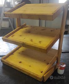 KIT COMPOSTO DA DUE ESPOSITORI A TRE PIANI 50X40 CM E SEI ESPOSITORI A PALA 60X40 CM IN LEGNO OLEATI CON VASELINA ALIMENTARE