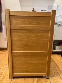 Bellissimi espositori in legno realizzati da falegname per un negozio di abbigliamento. Set di 3 pezzi: mobile grande (uso cassa) con vetro per esposizione prodotto e ripiano, 2 mobili piccoli aperti con ripiani . Da ritirare tassativamente in loco entro il 15 marzo per chiusura negozio .