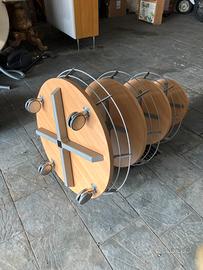 Causa chiusura attività vendo copia espositori (anche singolarmente)da negozio in legno. È composti da 4 ripiani rotondi con ringhierine in ferro. Telaio centrale robusto da 5x 5 cm, 4 ruote girevoli . Le misure sono: altezza 110cm,ripiano più piccolo diam 39 cm ,ripiano piu grande diam 70 cm