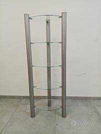 formato da 3 pilastri in metallo altezza m.1,60 e con n° 5 mensole in vetro temperato larghezza m.0,50.