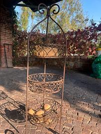 Etager con 3 cestelli in ferro brunito da terra con piedini Diametro cestelli 30 Altezza totale 102