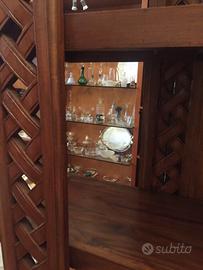 Etagere in legno con 5 mensole e supporti laterali intagliati. Altezza cm 195 e larghezza cm 110. Profondità cm 35