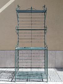 Étagère Scaffale in Ferro per Piante o per Arredo, fatto da artigiano locale completamente in ferro saldato, altezza 2,50 metri, larghezza 1,00 metro, profondita' 50 cm, peso intorno ai 100 kg, verniciato con finitura opaca verde rame / oro, per esposizione piante o altri complementi da arredo, per interno o anche esterno coperto, non spedisco per via del peso