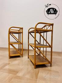 Coppia di étagère vintage anni ’70/’80 in bambù e rattan intrecciato.
