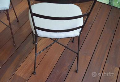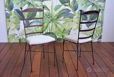 Struttura in ferro verniciato, seduta imbottita in tessuto.