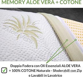 EVERGREENWEB Coppia Cuscini Letto 40x70 Alti 18 cm Modello Saponetta 100% Memory Foam Doppia Fodera Aloe Vera e Cotone Sfoderabile Guanciali RILASSANTI per dolori Cervicali con Dispositivo Medico