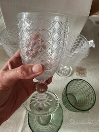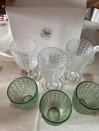 Bellissimo set Evviva include 3 calici vino bianchi alti 17 cm e 3 bicchieri acqua coordinati verde acqua alti 10,5 cm tutto assolutamente nuovo nella sua confezione prezzo suo €49,90 svendo a €20 no altre offerte grazie solo consegna a mano poiché vetro