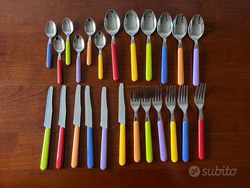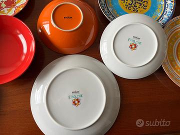 Vendo per inutilizzo servizio piatti per 6 persone (18 piatti - 6 piani, 6 fondi, 6 frutta) Excelsa mod. Etno Chic + set 24 posate (6 coltelli, 6 cucchiai, 6 forchette, 6 cucchiaini) Excelsa Fashion colori abbinati. Il servizio piatti è stato usato solo una volta, quindi praticamente perfetto. Le posate usate solo una volta, ad eccezione di quelle blu che presentano qualche segno d'uso (vedi foto). Prezzo trattabile.