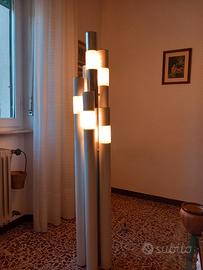 Lampada piantana originale Experia Angelo Brotto tenuta in buonissime condizioni senza ammaccature ne' graffi composta da nr. 6 cilindri in vetro e acciaio di cui 5 esterni di colore bianco e quello centrale cromato.