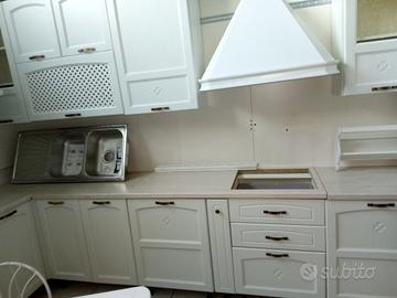 In questa proposta comprende, tutto il mobilio come da disegno, con La cappa MOD. CLASSICA - RUSTICA aspirante, con top spessore cm. 4 a scelta di una vasta gamma di colori, alzatina, zoccolo lavello e maniglie di serie in arg. Anticato, oppure Bronzo anticato, s/elettrodomestici.
