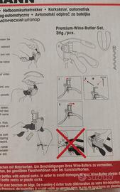 Cavatappi Automatico Wine-Butler Premium ha il corpo in metallo e i bracci della leva in plastica La spirale con rivestimento speciale scorre delicatamente nel tappo sotto la pressione della leva.