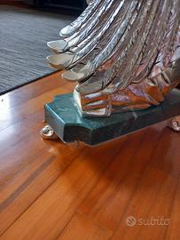 Vendo elegante falco decorativo, realizzato interamente in gesso e rivestito in argento. L'opera è curata nei dettagli e rappresenta un bellissimo esemplare di falco in posizione fiera e slanciata.