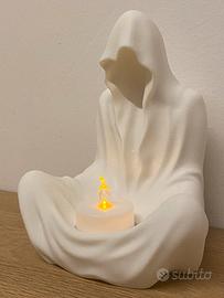 Aggiungi un tocco di magia spettrale alle tue decorazioni di Halloween con questo adorabile fantasma! Con un elegante mantello e le gambe conserte, questo fantasma ospita una candela a fiamma finta che tremola, creando un'atmosfera incantevole e misteriosa. Perfetto per l'ingresso, il salotto o come centro tavola per le feste. Realizzato con materiali di alta qualità, è ideale per chi ama il brivido senza rinunciare allo stile. Non perdere l'occasione di rendere il tuo