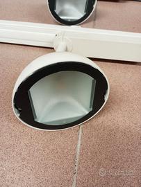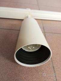 Splendido effetto al soffitto o a parete, in metallo verniciato bianco. Dispongo in totale di nr. 10 faretti con portalampada di due tipologie, conici (nr 4 pezzi) e rotondi (nr 6 pezzi); inoltre nr. 4 binari da cm 110 + nr. 2 binari da cm 70.