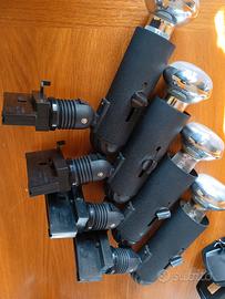 4 faretti da interno con attacco per binario, completamente orientabili, completi di lampadine argentate.