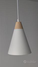 Vendo anche tre lampade a sospensione in alluminio satinato bianco e legno.