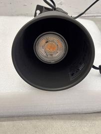 Vendo 6 faretti Ikea modello Hektar, colore grigio scuro. Compresi nel prezzo morsetti per fissarli a mensole/scrivanie/altro e lampadine, temperatura colore 2700K. ATTENZIONE: come visibile da foto, il cavo di alimentazione è stato tagliato, in quanto utilizzati in sostituzione di vecchie applique nella precedente abitazione. Fornisco lo spezzone di cavo tagliato con presa bipolare, per tutti i 6 faresti (vedere terza foto).