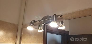 Molto pratici ed eleganti, i due faretti a LED sono ideali per illuminare benissimo lo specchio del bagno o qualsiasi parte di una stanza con poca luce. In acciaio inox satinato sono perfetti anche in ambienti con vapori come può essere un bagno. Disponibili fino a 10 pezzi con prezzo d concordare Lunghezza 29 cm, altezza 7 cm