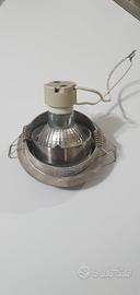10 faretti orientabili satinato con diametro interno da 7cm e diametro esterno da 8cm completo di 9 lampade GU 10 luce calda 60€