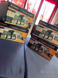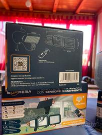 Come da foto ancora in scatola chiusa “nuovi” vendo N4 luci led regolabili alta luminosità da giardino o spazio aperto.. senza bisogno di correre con pannello solare e batteria interna ricaricabile, sensore di movimento e tre funzioni, con telecomando pronte all’uso.