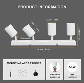 Faretto Soffitto GU10 - Faretti LED Soffitto Orientabili - Lampadario Soffitto Bianco - Faretti da Soffitto con 4 Luci - Lampadina Non Inclusa