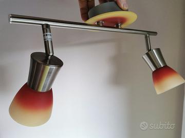 L'ideale per cameretta o studio! Lampada da soffitto in vetro giallo arancio e struttura in metallo, lampade orientabili montano 2 lampadine tipo E14 da 40W, R50 o D45. Nessuna imperfezione visibile.