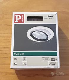 Faretto da incasso, monta lampadina alogena o led, colore bianco, potenza massima 20 Watt, tensione nominale 12 Volt, attacco G4, nuovo con scatola originale